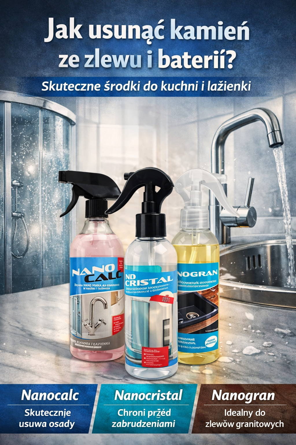 Kamień z twardej wody to jeden z najczęstszych problemów w kuchni i łazience. Białe zacieki pojawiają się na bateriach, zlewach, umywalkach, kabinach prysznicowych czy ceramice sanitarnej. Z czasem osad staje się trudny do usunięcia i pogarsza wygląd powierzchni.