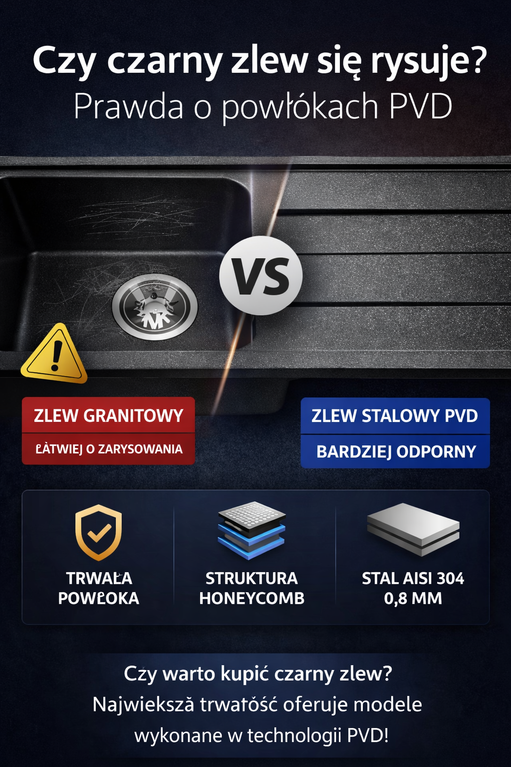 Czy czarny zlew się rysuje? Prawda o powłokach PVD