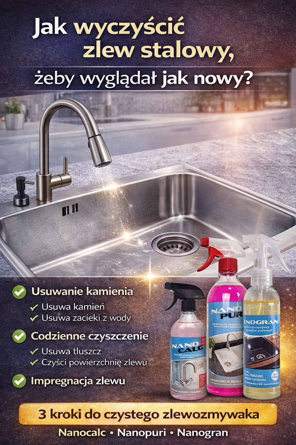 Zlewozmywak stalowy to jedno z najczęściej wybieranych rozwiązań w kuchni. Stal nierdzewna jest trwała, odporna na temperaturę i bardzo praktyczna w codziennym użytkowaniu. Z czasem jednak na powierzchni mogą pojawić się zacieki z wody, osad z kamienia lub ślady po garnkach i sztućcach.