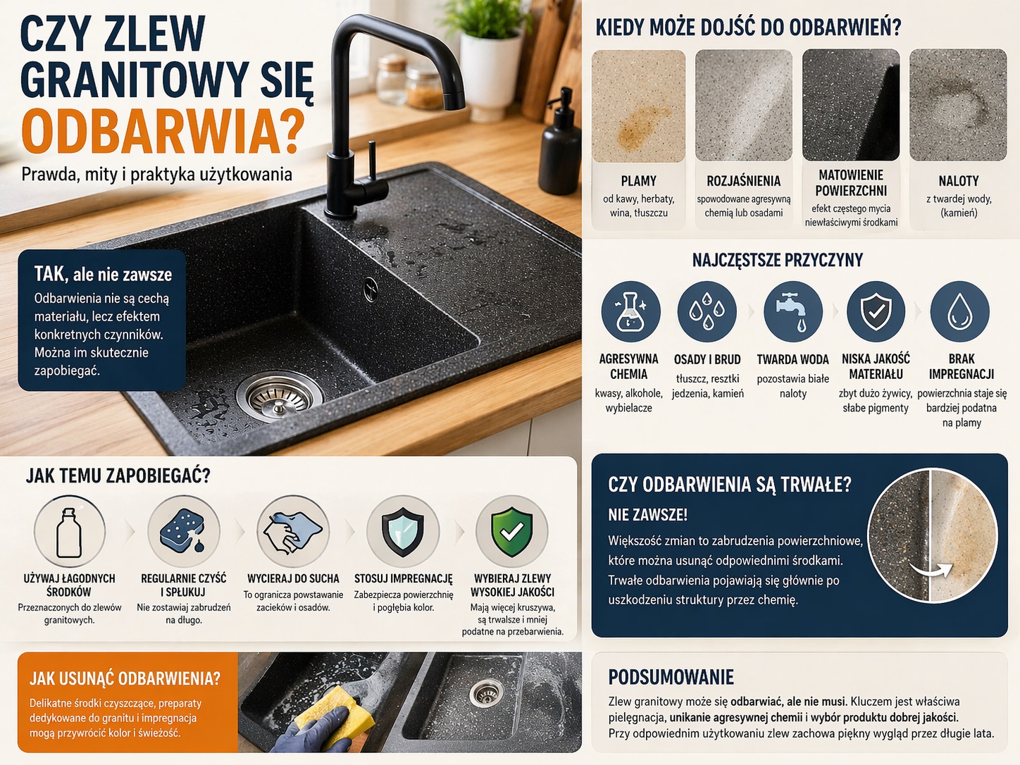 Czy zlew granitowy się odbarwia? Prawda, mity i praktyka użytkowania