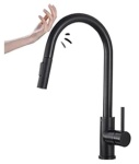 Nowoczesna bateria kuchenna dotykowa AFI czarna to innowacyjne rozwiązanie przeznaczone do każdej modnej kuchni. Jest niezwykle wygodna, nie wymaga łapania za kurki czy przekręcania. Wystarczy dotknąć ją za pomocą nadgarstka lub przedramienia i swobodnie można zatrzymywać czy uruchomić strumień wody. To bardzo komfortowe rozwiązanie zwłaszcza w kuchni, gdy ręce często mamy brudne, a nie chcemy zanieczyścić baterii. Bateria kuchenna dotykowa AFI czarna wykonana z mosiądzu to nie tylko funkcjonalność, ale również robiący piorunujące wrażenie design. Wyciągana wylewka pozwalająca na komfortowe mycie nawet dużych naczyń z ceramiczną głowicą. Wszystko w modnym odcieniu czerni, która idealnie wpasowuje się w obecnie panujące trendy.