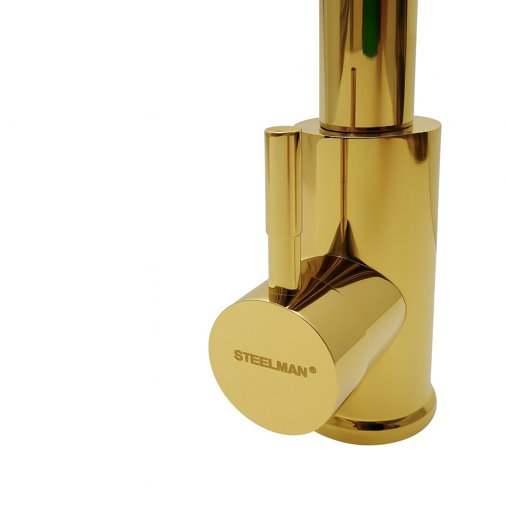 Elegancka bateria kuchenna serii AFINO w kolorze złotym o modernistycznym designie, stanowi znakomite uzupełnienie dla każdego nowoczesnego wnętrza kuchennego. Wyciągana wylewka to kluczowa cecha produktu, która gwarantuje nie tylko estetykę, ale również korzyści praktyczne. Użytkowanie baterii kuchennej AFINO to prawdziwa wygoda, gdyż umożliwia łatwiejsze mycie naczyń, szczególnie tych dużych. Złoty kolor podkreśla charakter nowoczesnej kuchni, wpisując się idealnie w aktualne trendy.