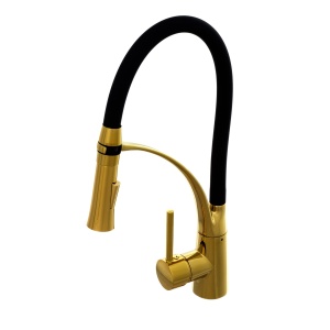 Bateria kuchenna IKA złota jest niezywkle oryginalnym produktem, komponującym się doskonale z niebanalnymi, nowoczesnymi aranżacjami. Wszystko ze względu na zastosowanie kontrastujących barw – ciepłego złota oraz czerni. Dzięki temu bateria wyróżnia się z całej aranżacji i od razu przyciąga wzrok. To rozwiązanie designerskie, trafiające w gusta miłośników oryginalnych projektów.