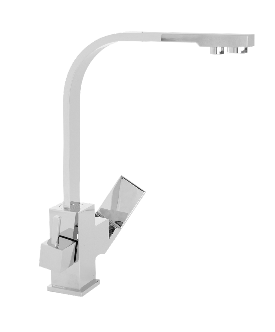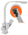 Nasza oferta obejmuje bardzo duży wybór eleganckich stojących baterii kuchennych znanych marek. Prezentowana bateria kuchenna do filtra wody FIL CHROM to produkt firmy Stellman. Jest to bateria stojąca wyposażona w obrotową wylewkę, co zdecydowanie ułatwia korzystanie z kranu. Na szczególną uwagę zasługuje tu nietuzinkowy design – zamiast powszechnie stosowanych okrągłych rurek, otrzymujemy baterię o spłaszczonym, nieco kanciastym wręcz kształcie.
