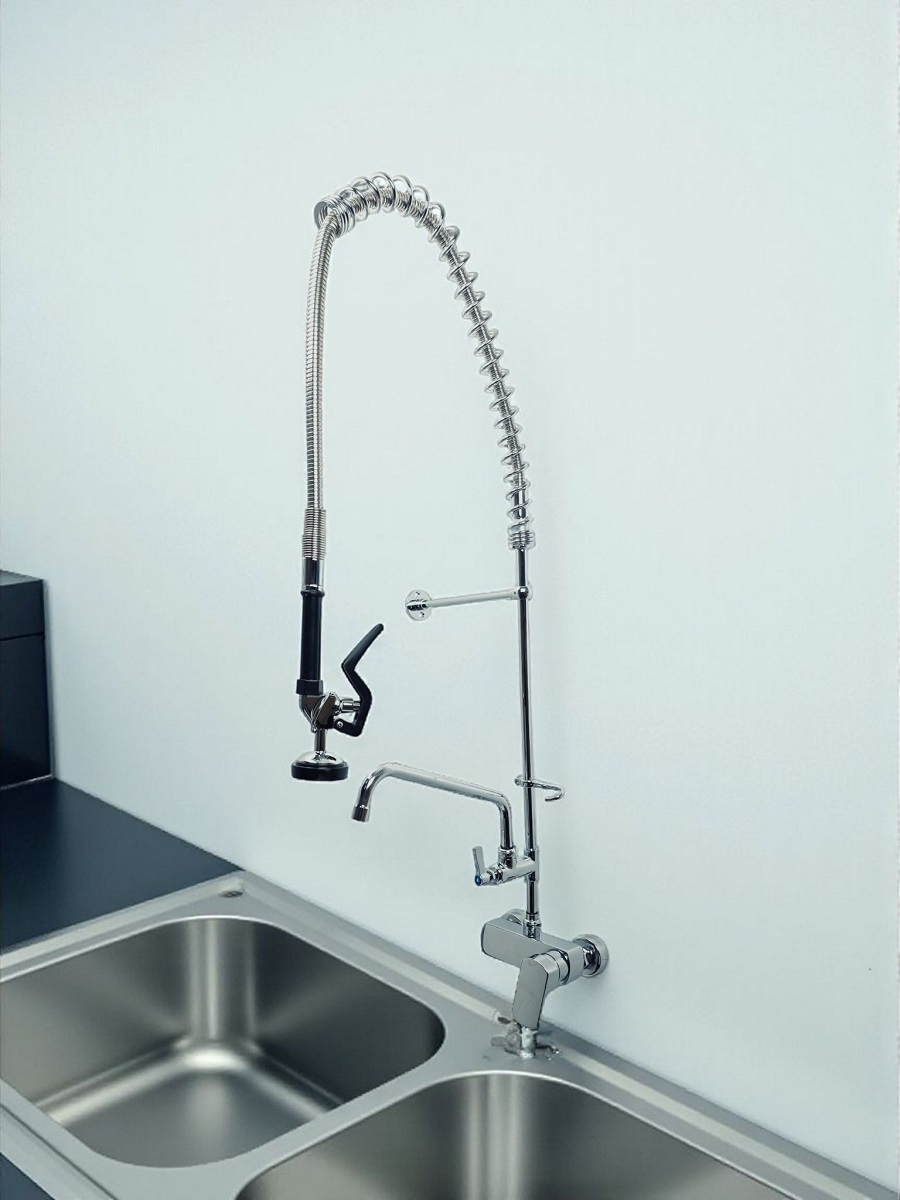 Bateria gastronomiczna kuchenna ścienna z wyciąganym prysznicem