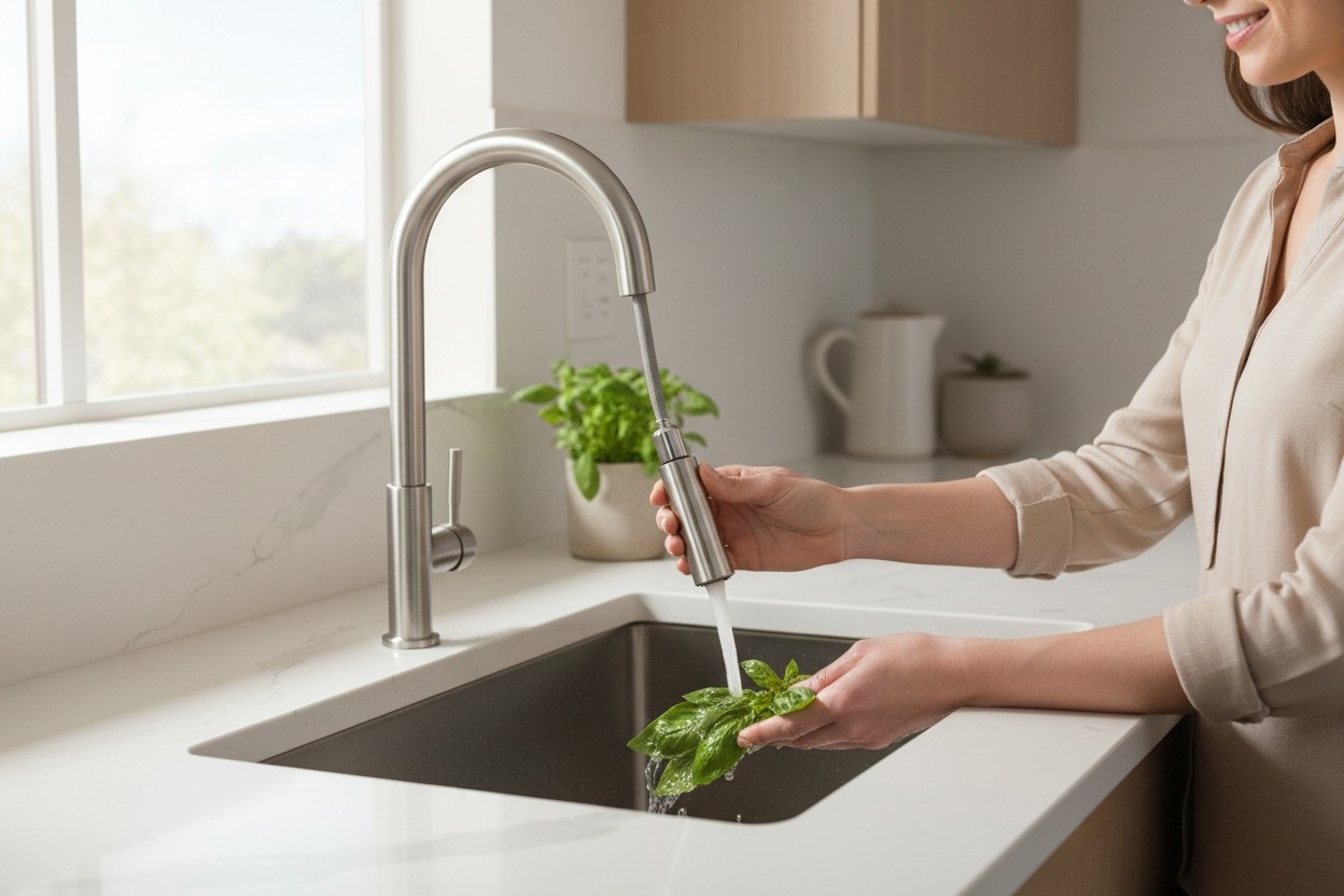 ✅ Wyciągana wylewka z funkcją podwójnego strumienia – uniwersalna moc lub delikatny prysznic do precyzyjnego czyszczenia.