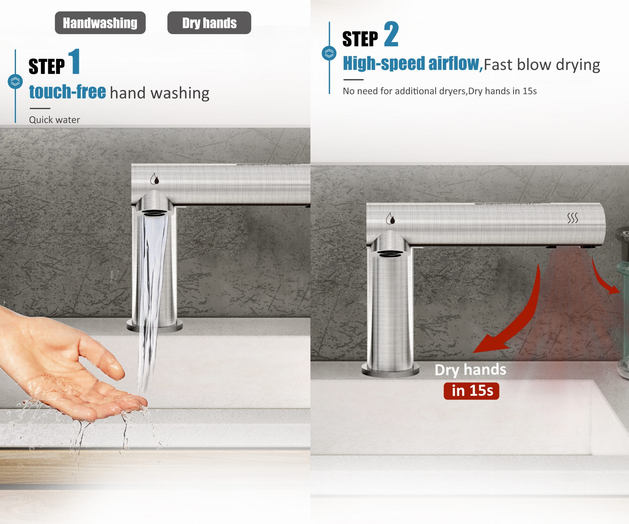 Jedyna taka bateria bezdotykowa, umywalkowa z suszarką na runku która zastępuje dwa urządzenia. Łatwość obsługi jaki konserwacji sprawia ogromną przyjemność z jej użytkowania.