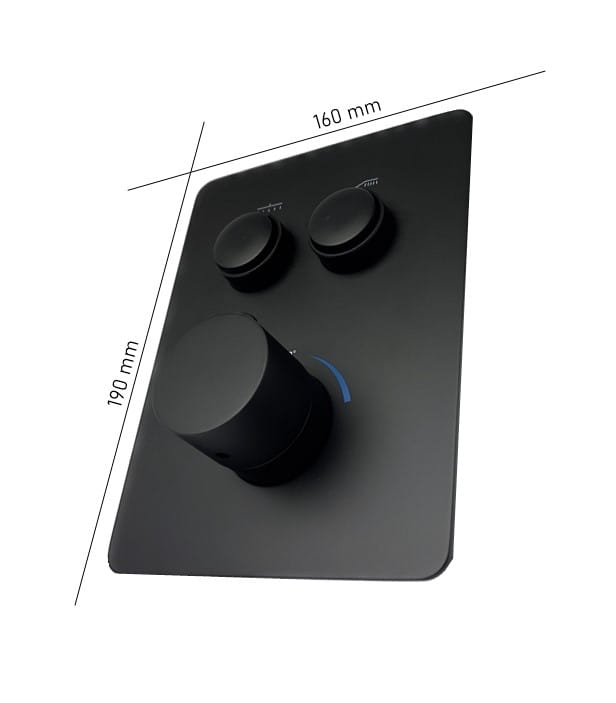 Nowoczesna bateria podtynkowa termostatyczna dwudrożna EXEO w kolorze czarny matowy to idealne rozwiązanie do kabiny prysznicowej, łączące elegancki wygląd z najwyższą funkcjonalnością. Zestaw obsługuje dwa niezależne źródła wody – deszczownicę ścienną 30 cm oraz słuchawkę prysznicową, zapewniając komfortowy prysznic każdego dnia.