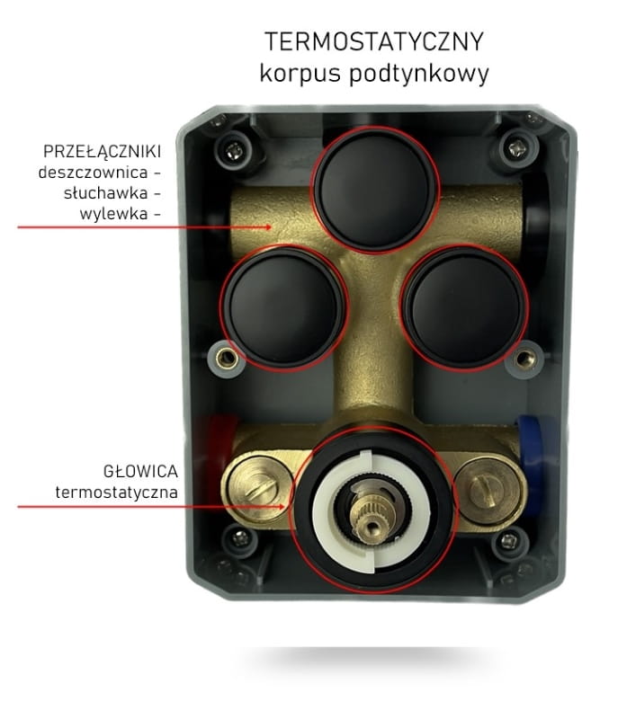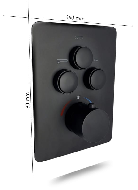 Korpus termostatu został wykonany z mosiądzu najwyższej jakości, gwarantującego trwałość i odporność na korozję. Powierzchnia pokryta została elegancką powłoką w kolorze czarny matowy, odporną na zarysowania, wilgoć i środki czyszczące. To produkt stworzony z myślą o długotrwałym, bezproblemowym użytkowaniu.