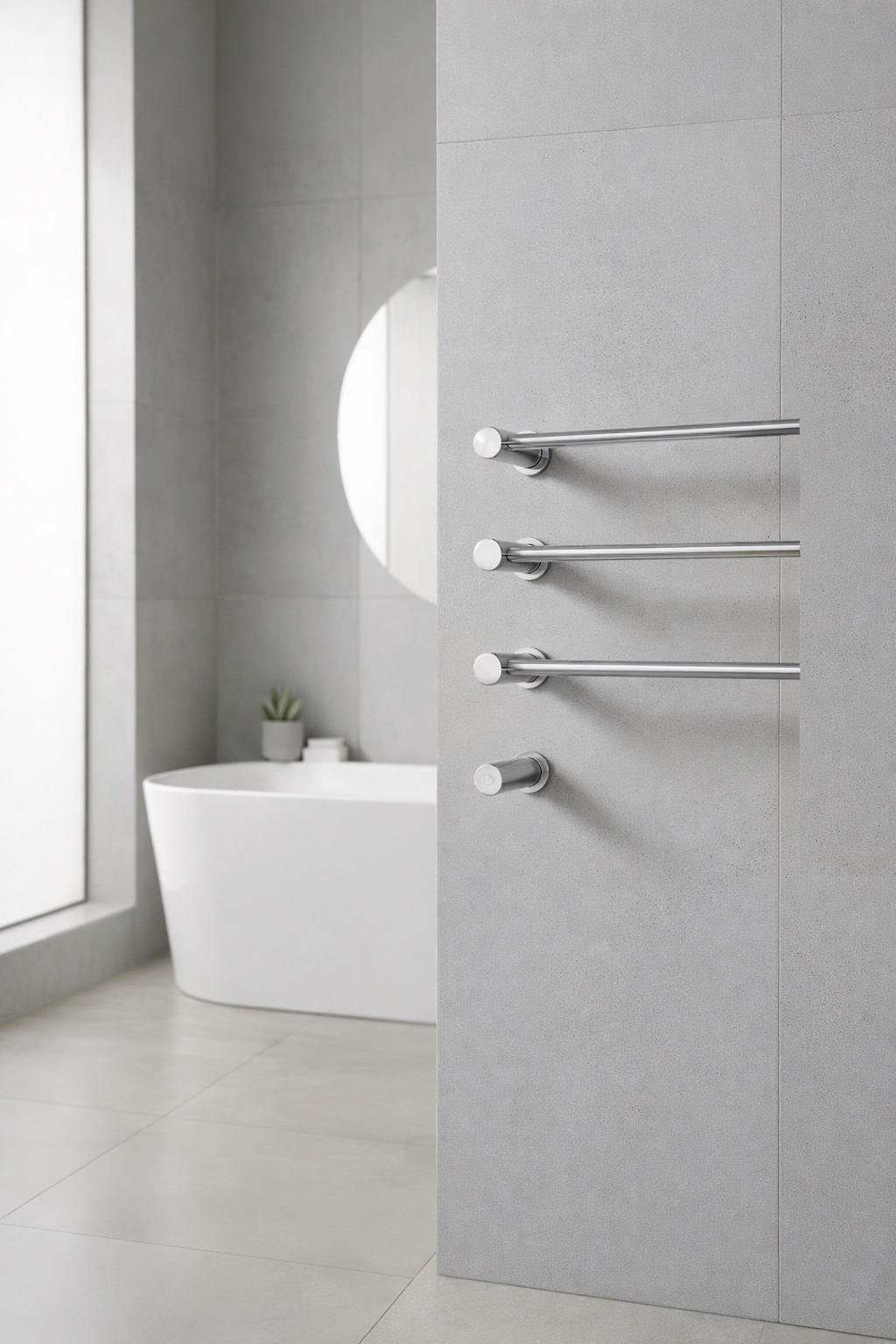 GT3 STELLMAN to elektryczny grzejnik podtynkowy zaprojektowany z myślą o nowoczesnych wnętrzach, w których liczy się estetyka, porządek i komfort użytkowania. Dzięki instalacji podtynkowej elementy montażowe pozostają niewidoczne, a na ścianie eksponowana jest wyłącznie elegancka, chromowana część grzewcza.