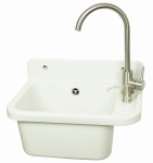 • Zlew gospodarczy VIGO biały z baterią LUGA inox i dozownikiem inox