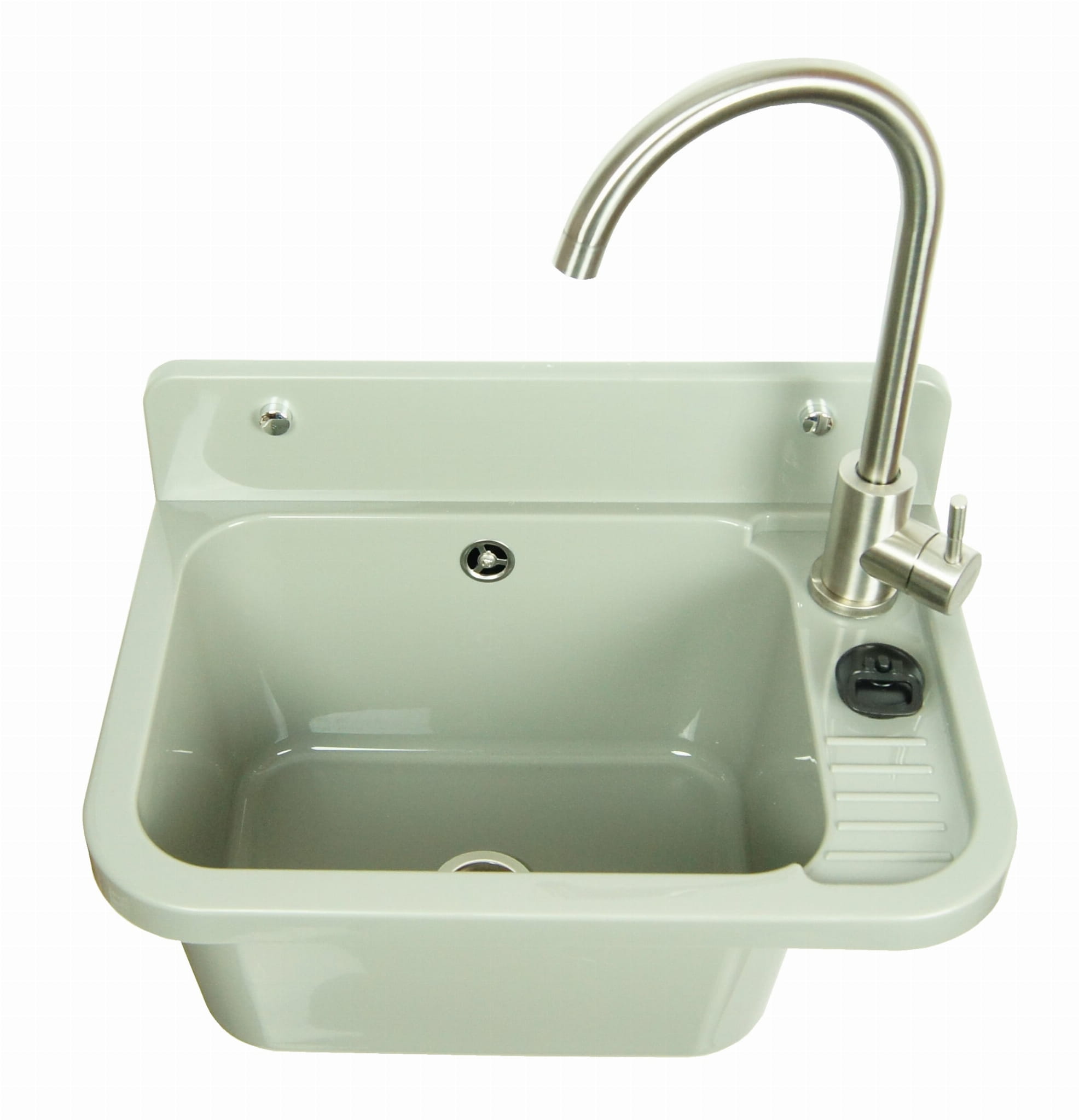 Komora gospodarcza VIGO szara z baterią LUGA świetnie sprawdzi się w miejscach innych niż kuchnia, gdzie możesz umyć brudne przedmioty o większych gabarytach. Komorę gospodarczą VIGO można zainstalować w garażu, pralni, warsztacie lub w ogrodzie, a dzięki zastosowaniu wysokiej jakości syfonu prezentowany model można podłączyć do pralki lub zmywarki. Komora gospodarcza w uniwersalnym szarym kolorze została wykonana z polipropylenu odpornego na wysokie temperatury i działanie środków chemicznych. Zlew gospodarczy Vigo o wymiarach 500 x 340 x 210 mm i wysokości 310 mm został wyposażony w ruchomą wylewkę z niezawodną głowicą ceramiczną o średnicy 35 mm. Jednouchwytowa bateria Lugo jest wykonana ze stali nierdzewnej i można ją zamontować zarówno z lewej, jak i z prawej strony zlewu. Produkt jest łatwy w montażu i w utrzymaniu w czystości. W naszej ofercie znajdziesz też wysokiej jakości baterie kuchenne i umywalki.