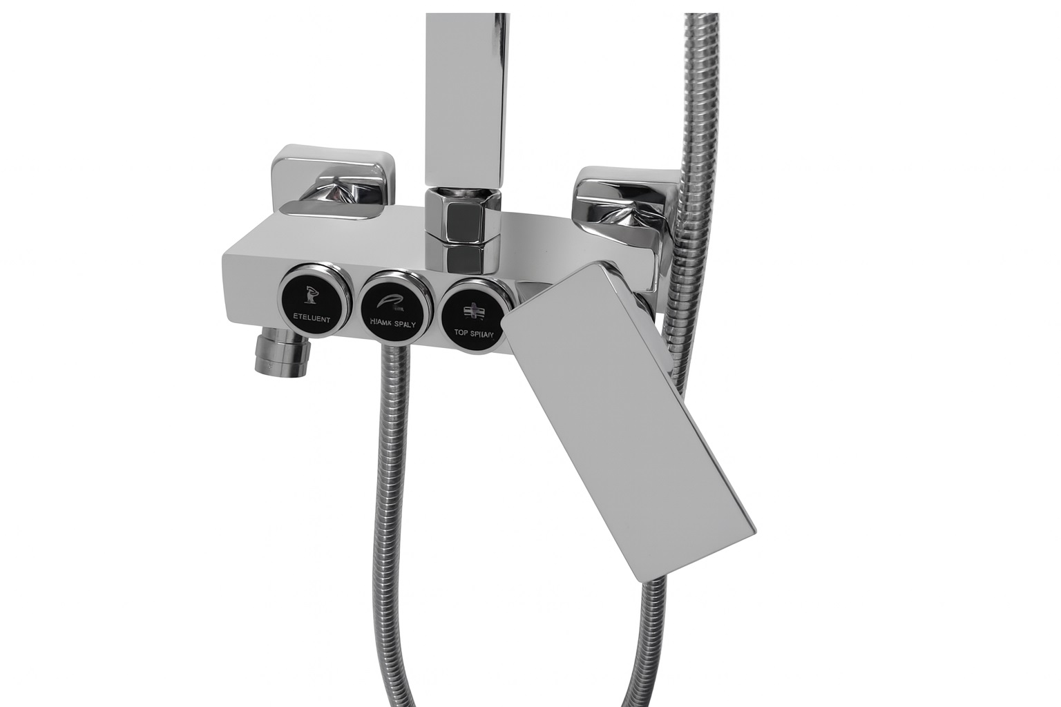 Bateria wannowa z zestawem prysznicowym i deszczownicą ze dyskretna wylewką wannową MAXIMO Chrom
