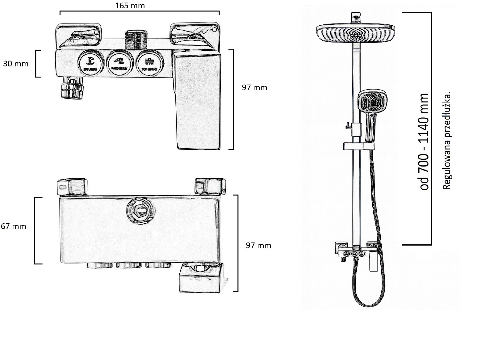 dla instalacji zestawu np. w systemie "wanna z parawanem" sugerujemy zakup przedłużki - H + 250 mm