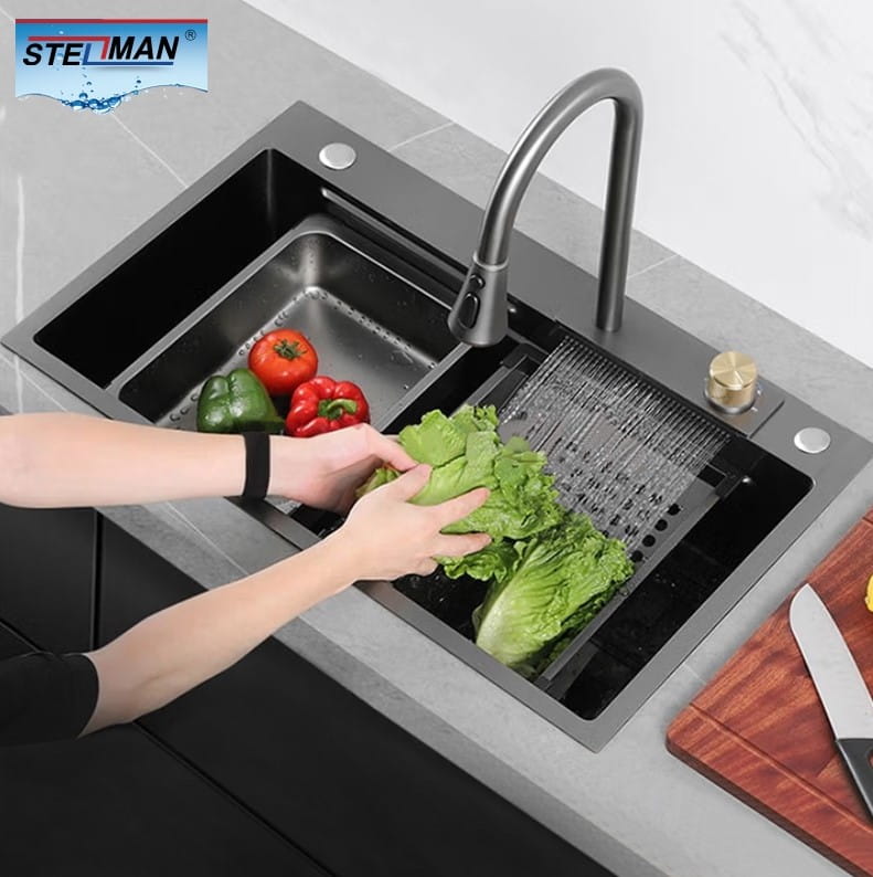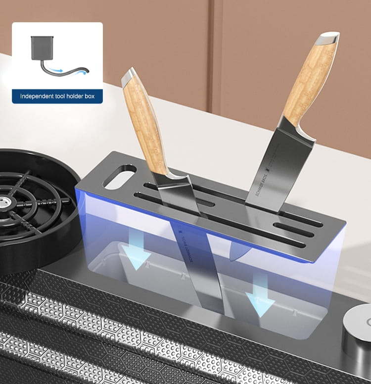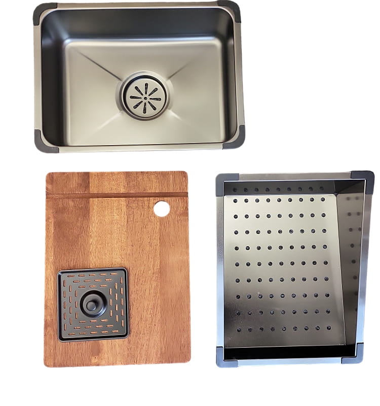 • system odpływowy (kompletny syfon z kwadratowym sitkiem) i dodatkową suszarką do noży