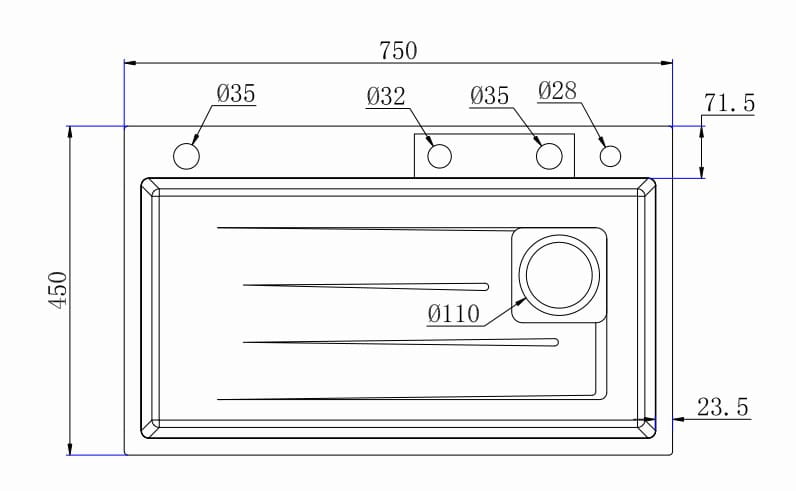 • Wymiar zlewozmywaka: 750 mm x 450 mm