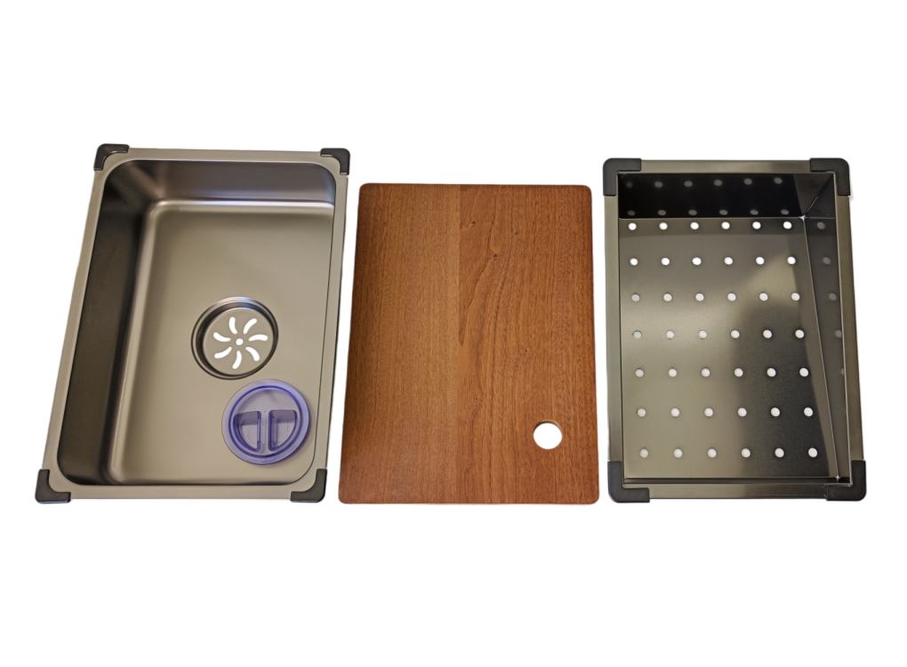 • system odpływowy (kompletny syfon z kwadratowym sitkiem) i dodatkową suszarką do noży