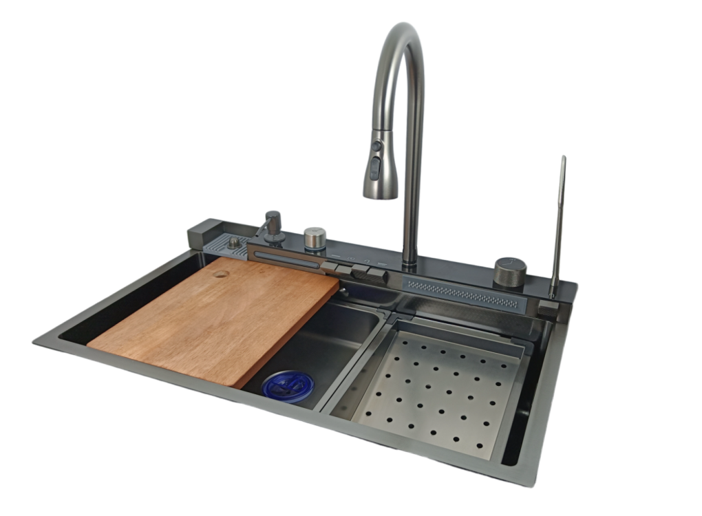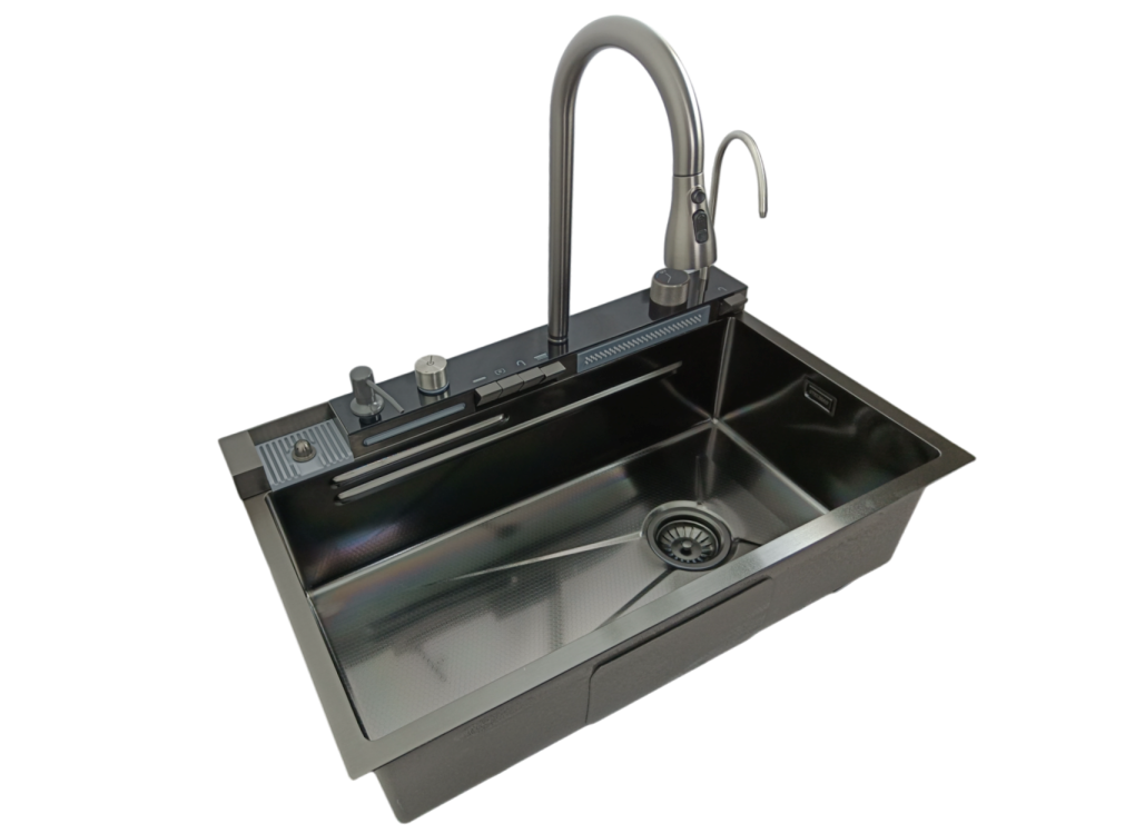 Zlewozmywak MODO PIANO 7545 w odsłonie premium. Wzbogacony o elektroniczny wyświetlacz i dozownik płynu do mycia naczyń. Jeszcze bardziej funkcjonalny niż dotychczas. Zlewozmywak charakteryzuje się eleganckim wykończeniem powierzchni oraz klasyczną i modną stylistyką, wkomponuje się w niemal każdą aranżację kuchni. Odporna na zarysowania struktura komory zlewu gwarantuje niebywale długą żywotność powłoki wykończeniowej. Nieodzowną cechą zlewów stalowych STELLMAN serii MODO i STEEL jest gięcie oraz spawanie stali, co powoduje zachowanie ostrej stylistyki kątów zlewozmywaka, czego nie można uzyskać w przypadku tłoczonych zlewozmywaków szeroko dostępnych na rynku.