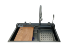 To nie jest zwykły zlew jednokomorowy. To kompletna strefa pracy typu workstation.