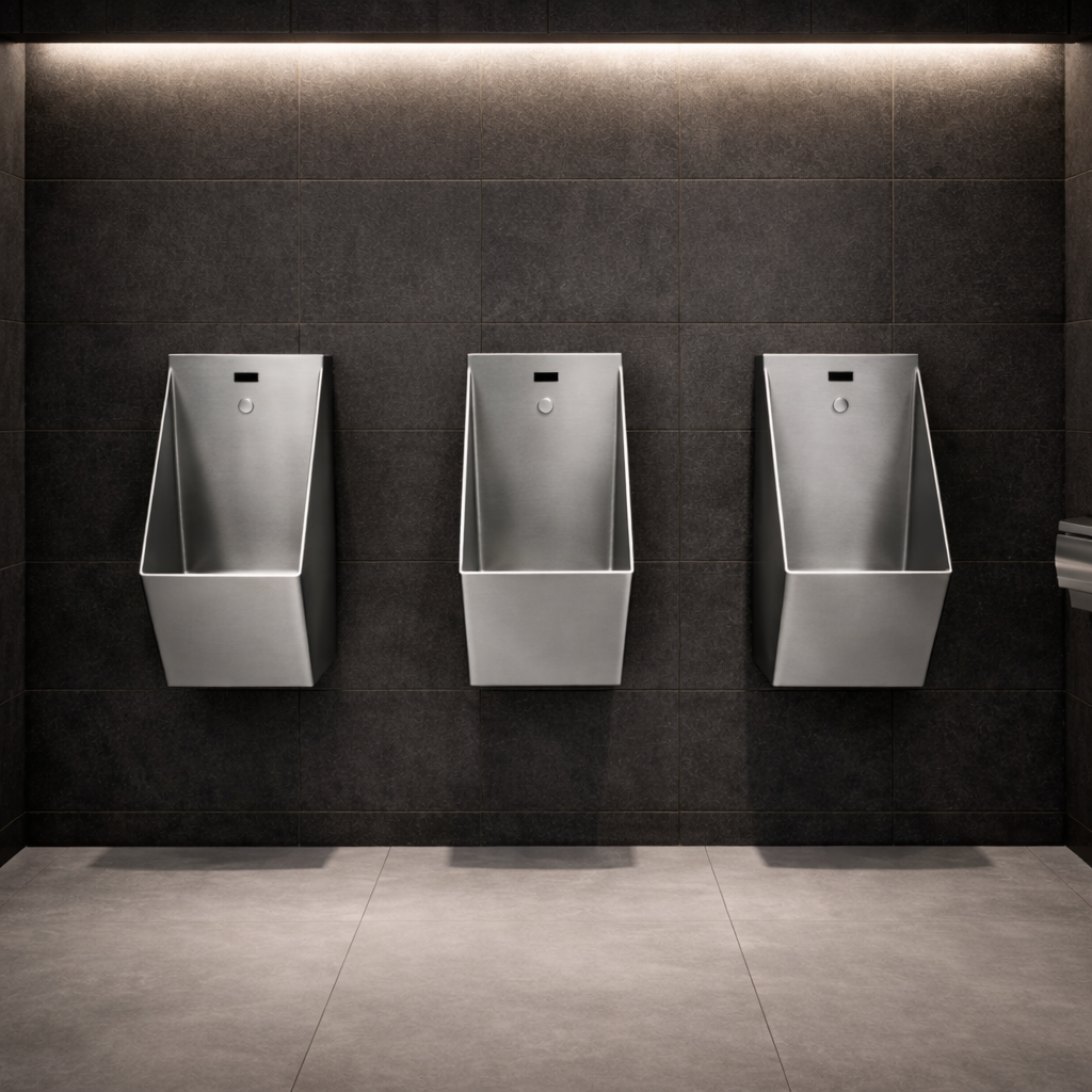 Pisuar 8111B w kolorze czarnym to nowoczesne rozwiązanie sanitarne z wbudowaną fotokomórką, wykonane ze stali nierdzewnej AISI 304 i pokryte trwałą, odporną na ścieranie powłoką PVD. Matowa czerń nadaje wnętrzu wyrazisty, architektoniczny charakter i doskonale komponuje się z nowoczesną armaturą oraz minimalistycznym wystrojem.