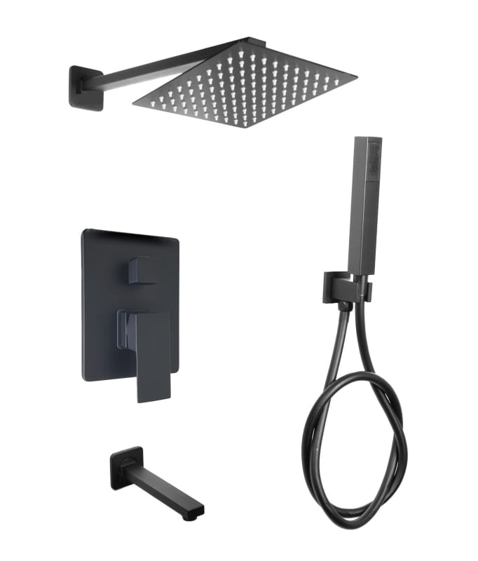 Bateria wannowo-prysznicowa podtynkowa z deszczownicą 40 cm QATRO CZARNA Stellman