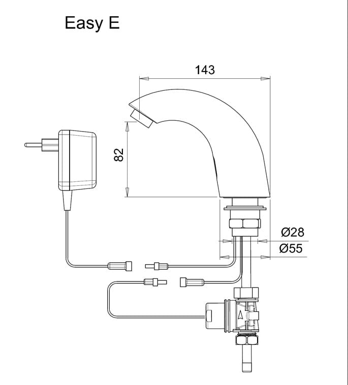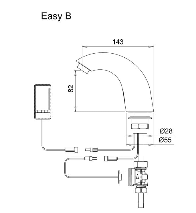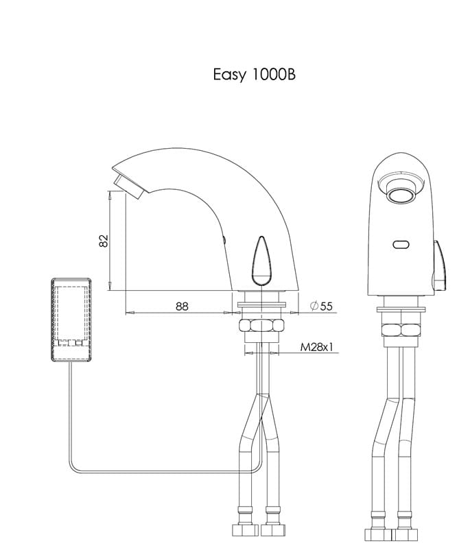 - Bateria umywalkowa, uruchamiana elektronicznie czujnikiem zbliżeniowym;