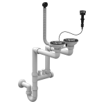 Syfon Zlewozmywakowy CZARNY Przyścienny Automatyczny 2 komorowy