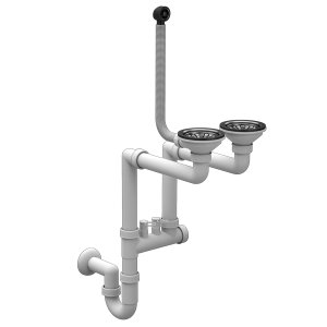 Syfon Zlewozmywakowy CZARNY Przyścienny Ręczny 2 komorowy