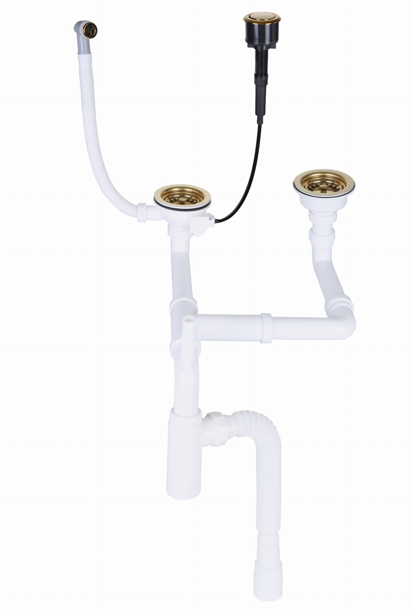 Syfon Zlewozmywakowy Przyścienny Automatyczny 2 komorowy złoty klik klak