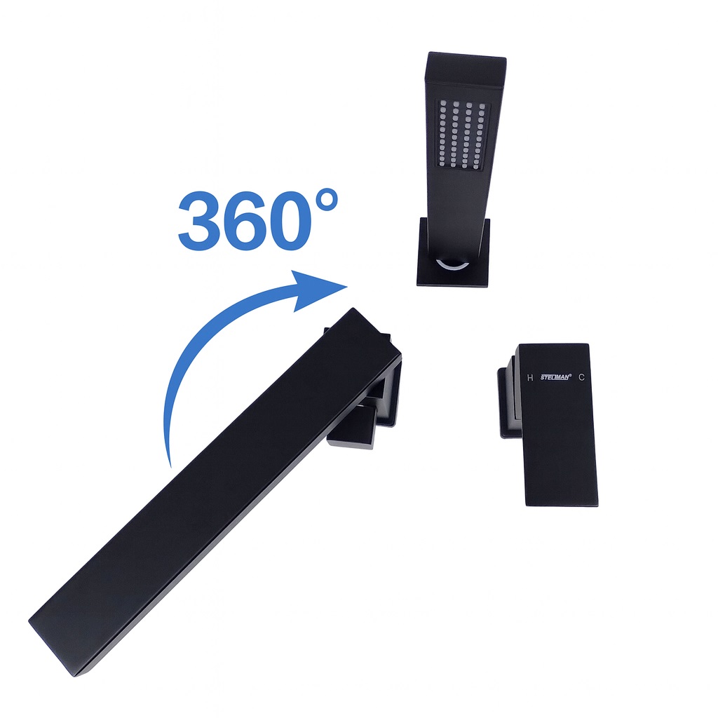 Dzięki obrotowej wylewce 360° bateria jest niezwykle praktyczna w codziennym użytkowaniu – umożliwia wygodne kierowanie strumienia wody, co znacząco podnosi komfort kąpieli. W zestawie znajduje się także słuchawka prysznicowa z podstawą i wężem, pozwalająca na szybkie opłukanie wanny lub wygodne mycie włosów.
