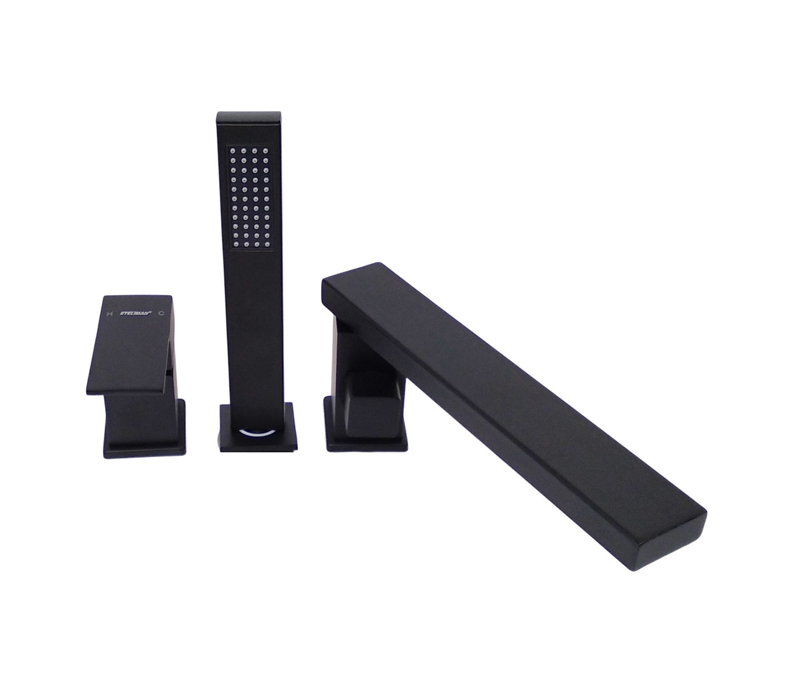 Zestaw łazienkowy TERZO Black: Bateria Wannowa 3-Otworowa + Umywalkowa bateria QATRO
