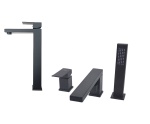 Zestaw łazienkowy TERZO Black: Bateria Wannowa 3-Otworowa + Umywalkowa nablatowa bateria QATRO