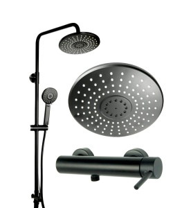UNO BLACK zestaw bateria prysznicowa natryskową z deszczownicą CZARNY