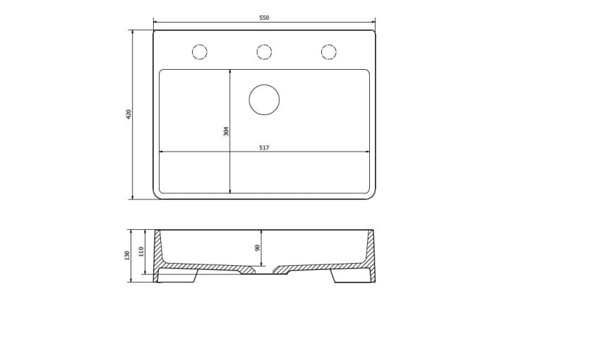 Wygodna umywalka nablatowa Silba 55 wykonana została z granitu, który zapewnia gwarancję odporności na zarysowania i odbarwienia. Klasyczny prostokątny kształt znajdzie zastosowanie w każdym projekcie łazienki możliwość wybicia otworów w 3 miejscach pozwala na dowolność w wyborze baterii.
