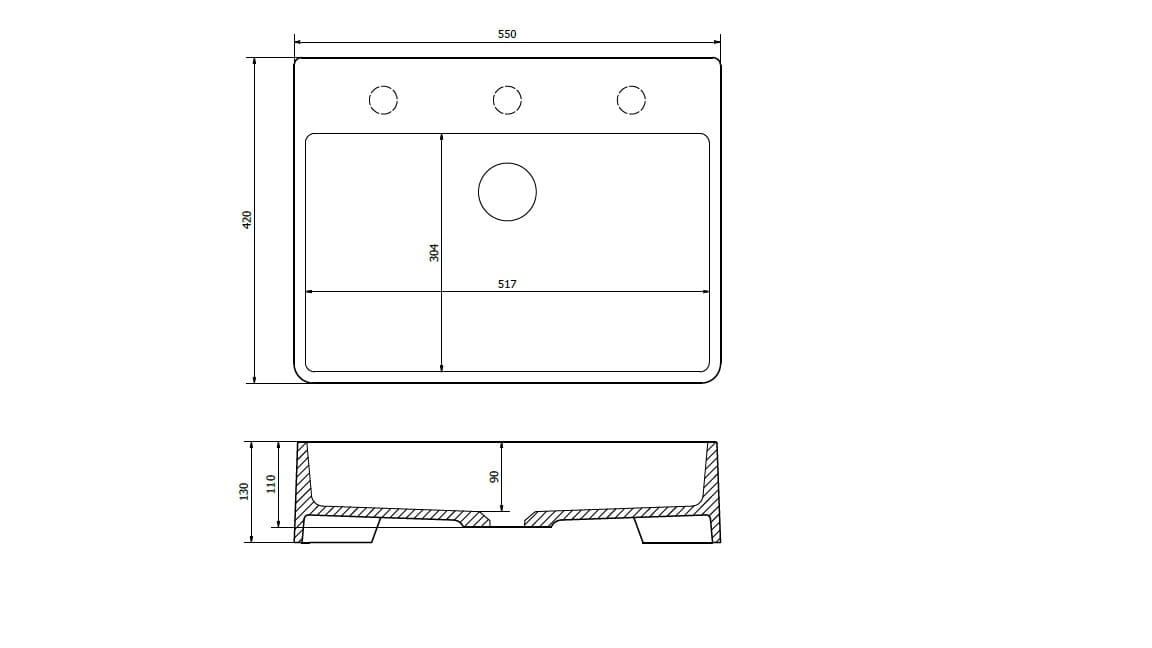 Wygodna umywalka nablatowa Silba 55 wykonana została z granitu, który zapewnia gwarancję odporności na zarysowania i odbarwienia. Klasyczny prostokątny kształt znajdzie zastosowanie w każdym projekcie łazienki możliwość wybicia otworów w 3 miejscach pozwala na dowolność w wyborze baterii.