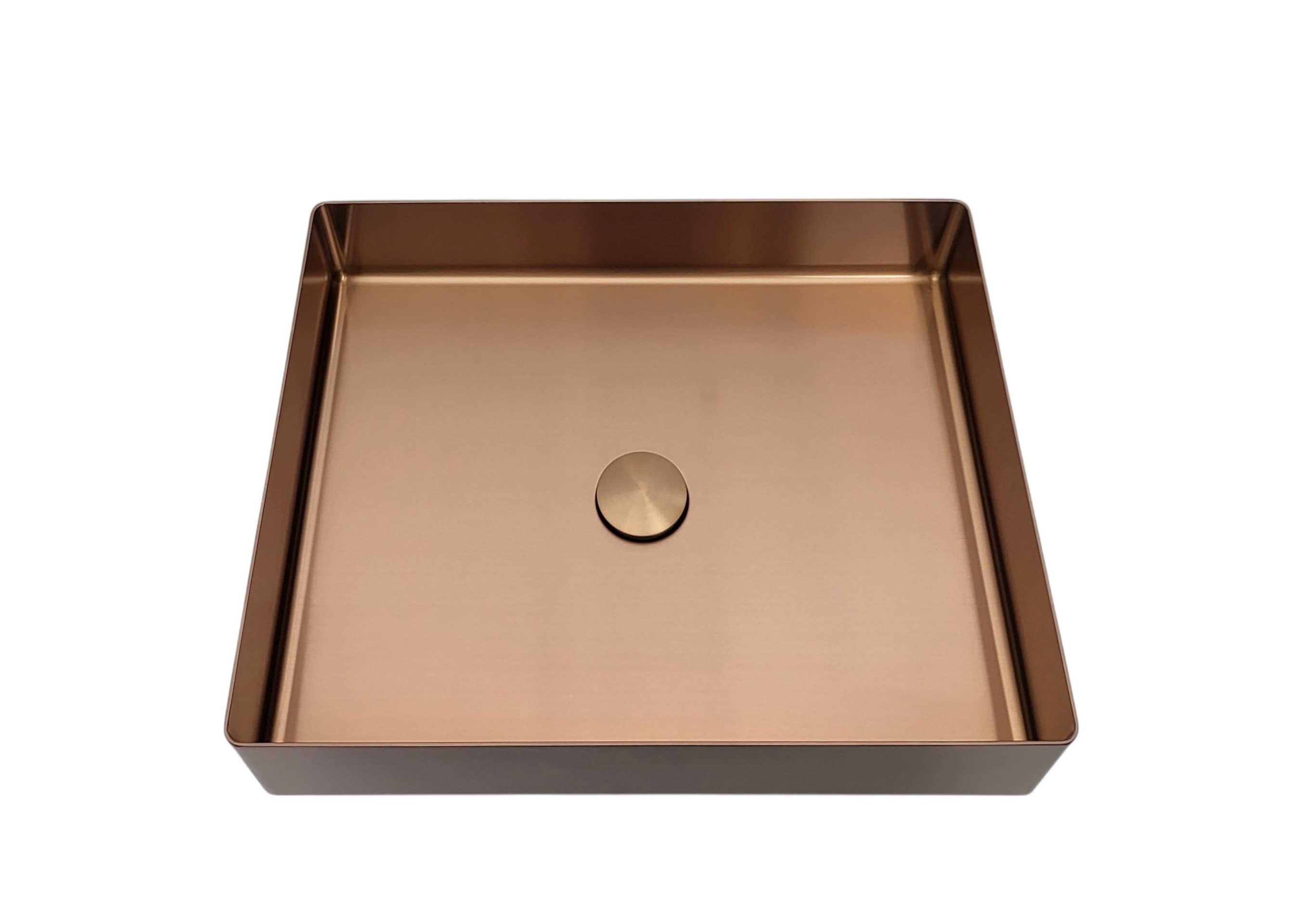 Umywalka prostokątna stalowa nablatowa 50x40 ROUND – miedziana PVD