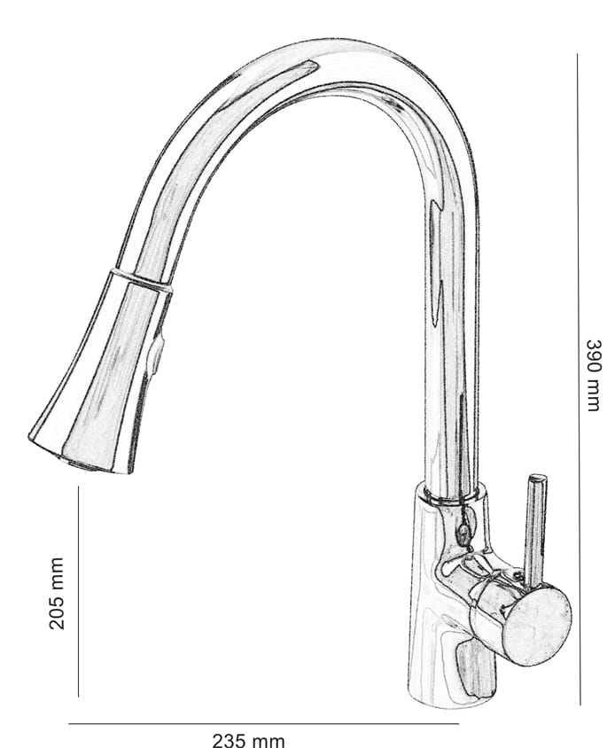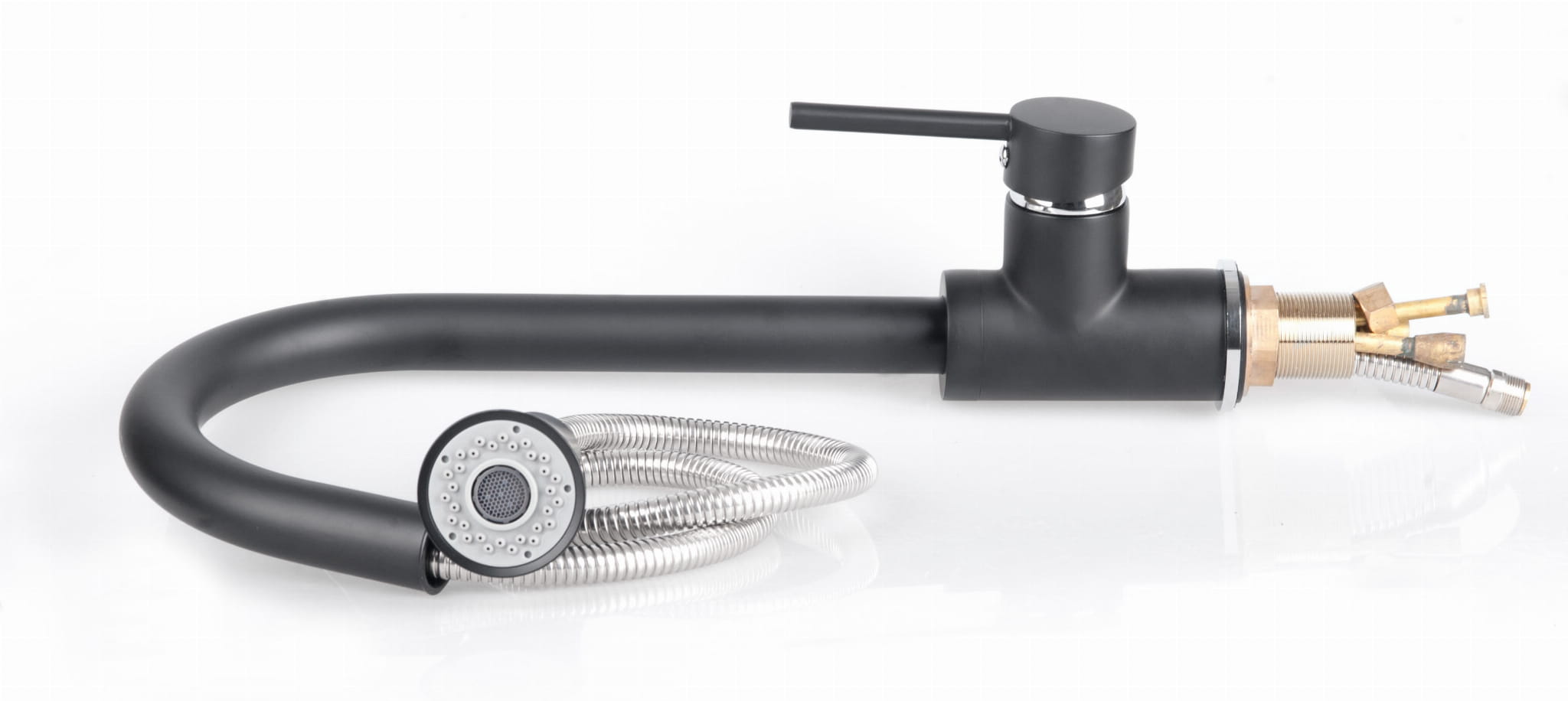 Warto pamiętać, że bateria granitowa YOKO pełni nie tylko funkcję estetyczną – jest również wyjątkowo wytrzymała i funkcjonalna. Posiada przełącznik strumieni, znajdujący się przy wyciąganej wlewce. Dzięki temu rozwiązaniu będziemy mogli dopasować moc strumienia do naszych potrzeb. Do wyboru jest standardowy strumień natryskowy, jak również wersja eco perlator, co umożliwia ograniczenie zużycia wody aż o 50%. Mimo tego, że bateria granitowa YOKO bez wątpienia różni się od innych baterii zlewozmywakowych, jej obsługa i montaż nie sprawią żadnych problemów. W opakowaniu oprócz baterii znajdziesz również wężyki podłączeniowe wody, mocowanie baterii i instrukcję montażu. Producent potwierdza jakość wykonania produktu, dając na niego aż trzyletnią gwarancję.