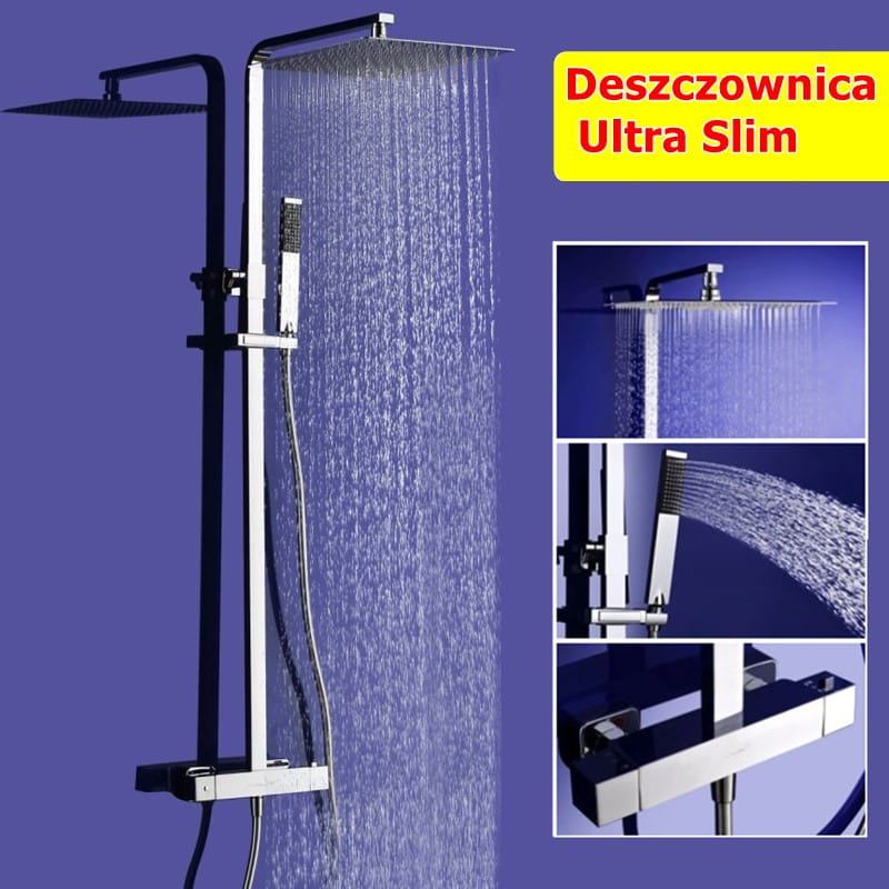 Zestaw Natryskowy Prysznicowy Termostatyczny z Deszczownicą AQUASLIM