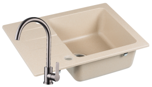 Zlewozmywak Granitowy COAST 25 beż z baterią stal
