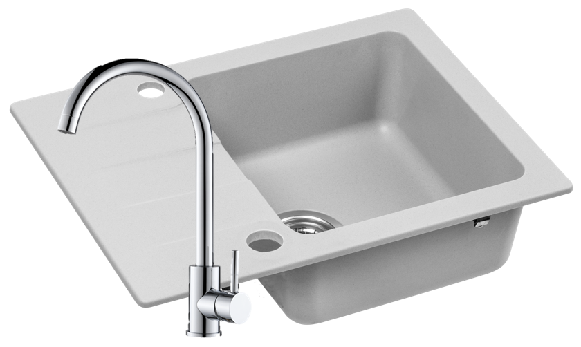 Zlewozmywak Granitowy COAST 25 szary z baterią chrom
