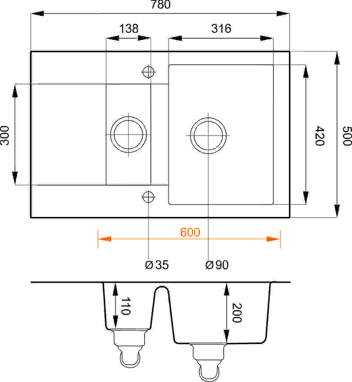 - zlewozmywak odwracalny (ociekacz może być po lewej lub prawej stronie)