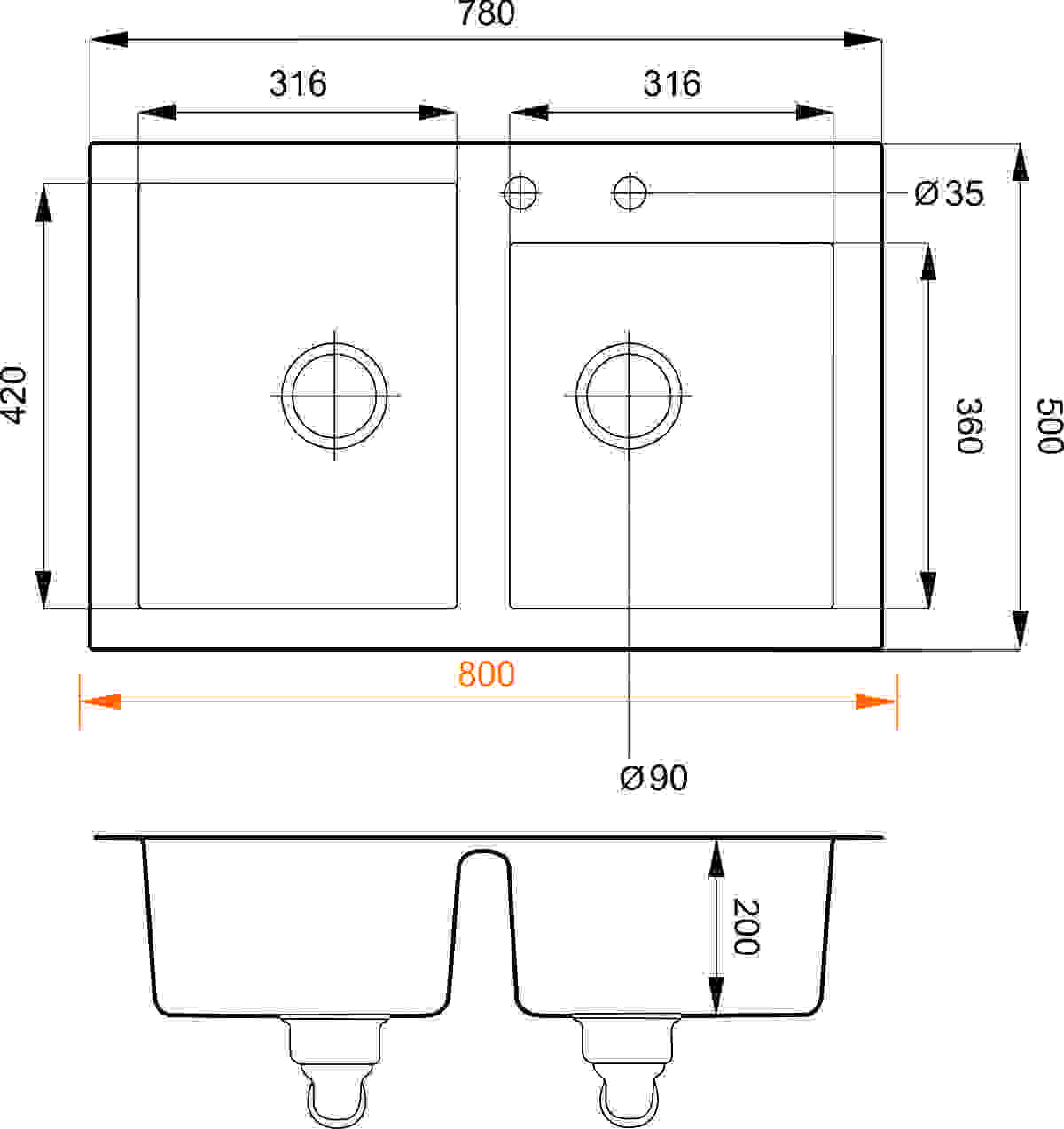 - odpływ - 3 1/2 "