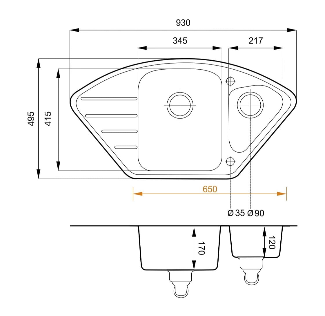 Zlewozmywak Merkury 93x49,5 cm sprawdzi się zarówno w nowoczesnych, jak i tradycyjnych kuchniach. Jego narożna konstrukcja pozwala na ergonomiczne zagospodarowanie przestrzeni, a solidne wykonanie zapewnia bezawaryjne użytkowanie przez lata.