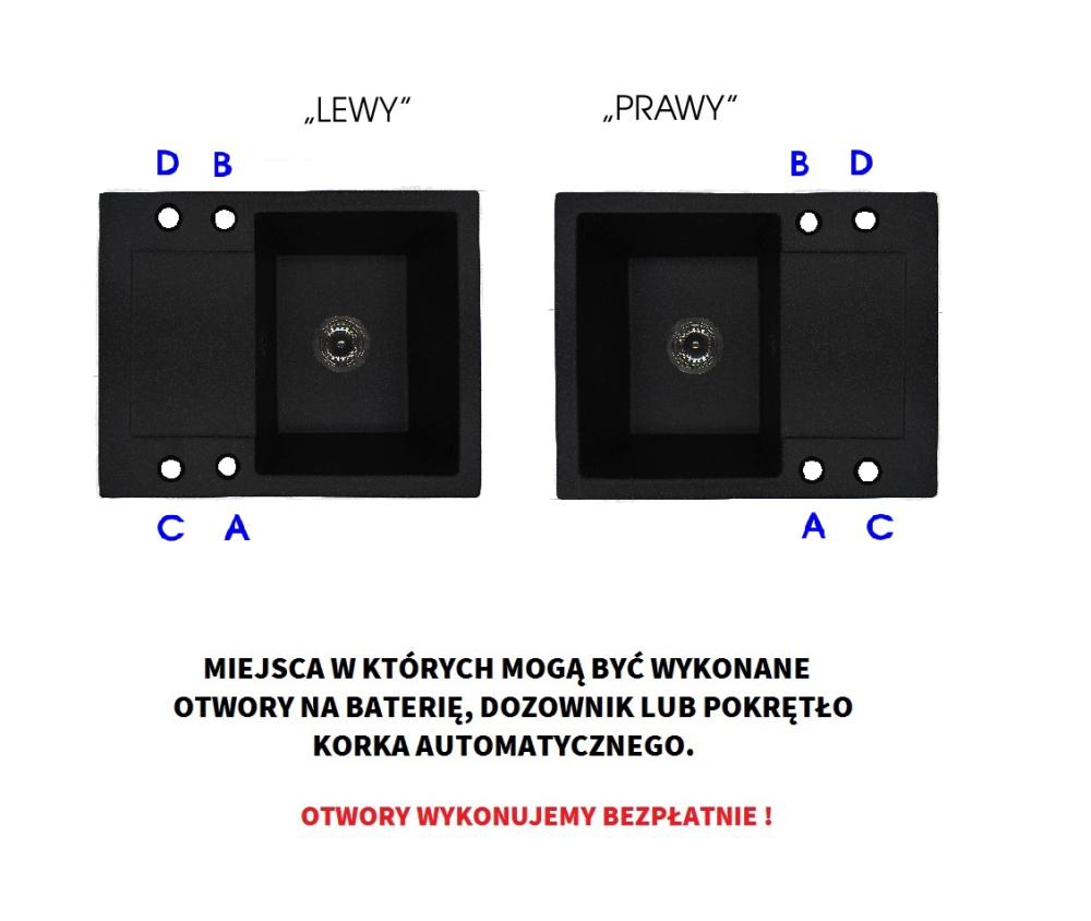Zwrot nie jest możliwy gdy klient wybiera nawiercenie otworów dedykowanych do swojej kuchni, jak również wykona otwory we własnym zakresie.