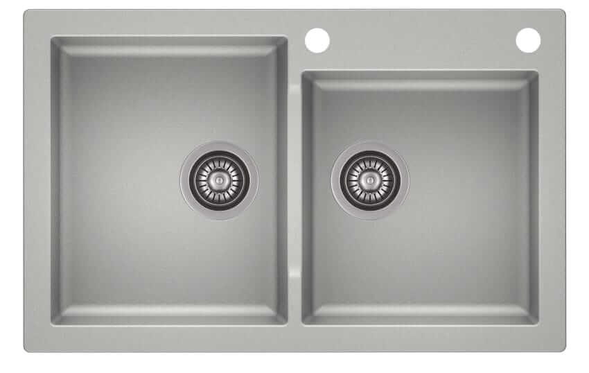 Dwukomorowy zlewozmywak Mojito 140 to idealne rozwiązanie dla rodzinnych kuchni. Obszerne komory pozwalają na swobodne korzystanie ze zlewu. Prosty i estetyczny design pasuje dla każdego stylu kuchni a dostępne kolory doskonale dopasują się do wybranych szafek. Fabrycznie wybite otwory ułatwiają montaż baterii kuchennej lub dozownika.