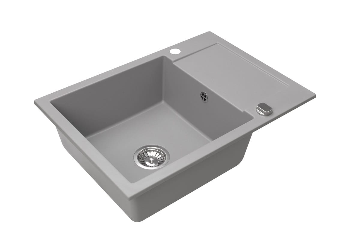 Nowoczesny zlewozmywak jednokomorowy o wymiarach 70 × 50 cm to idealne rozwiązanie dla osób ceniących trwałość, praktyczność i styl. Wykonany z materiału kompozytowego (80% kruszywa granitowego i 20% żywicy), charakteryzuje się wyjątkową odpornością na uszkodzenia, wysokie temperatury i codzienne użytkowanie.