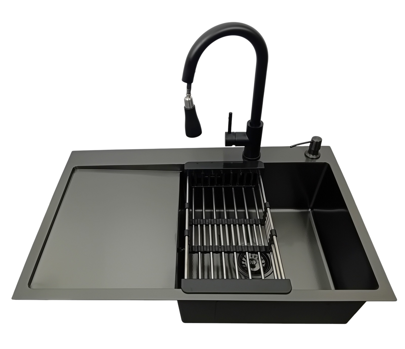 Zestaw Zlewozmywak stalowy 7849 Prawy CZARNY + Koszyk teleskopowy + Bateria MIURA + Dozownik to kompleksowe rozwiązanie, które łączy trwałość, nowoczesny design i funkcjonalność. To inwestycja w wygodę codziennego użytkowania oraz elegancję Twojej kuchni.