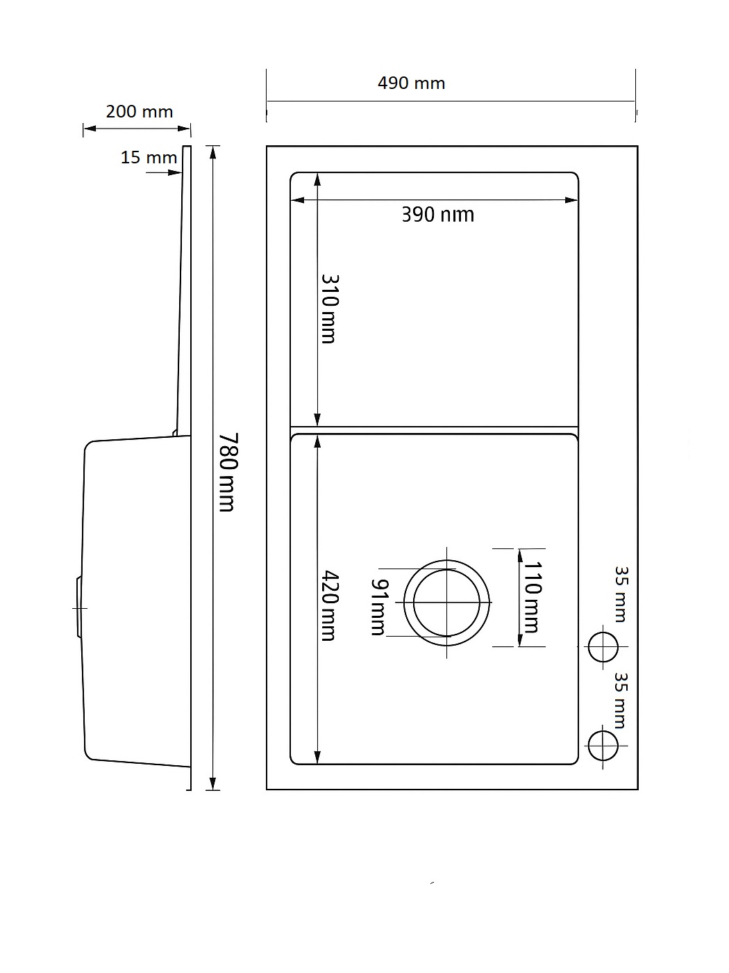◼ Wymiary zewnętrzne: 780 × 490 × 200 mm