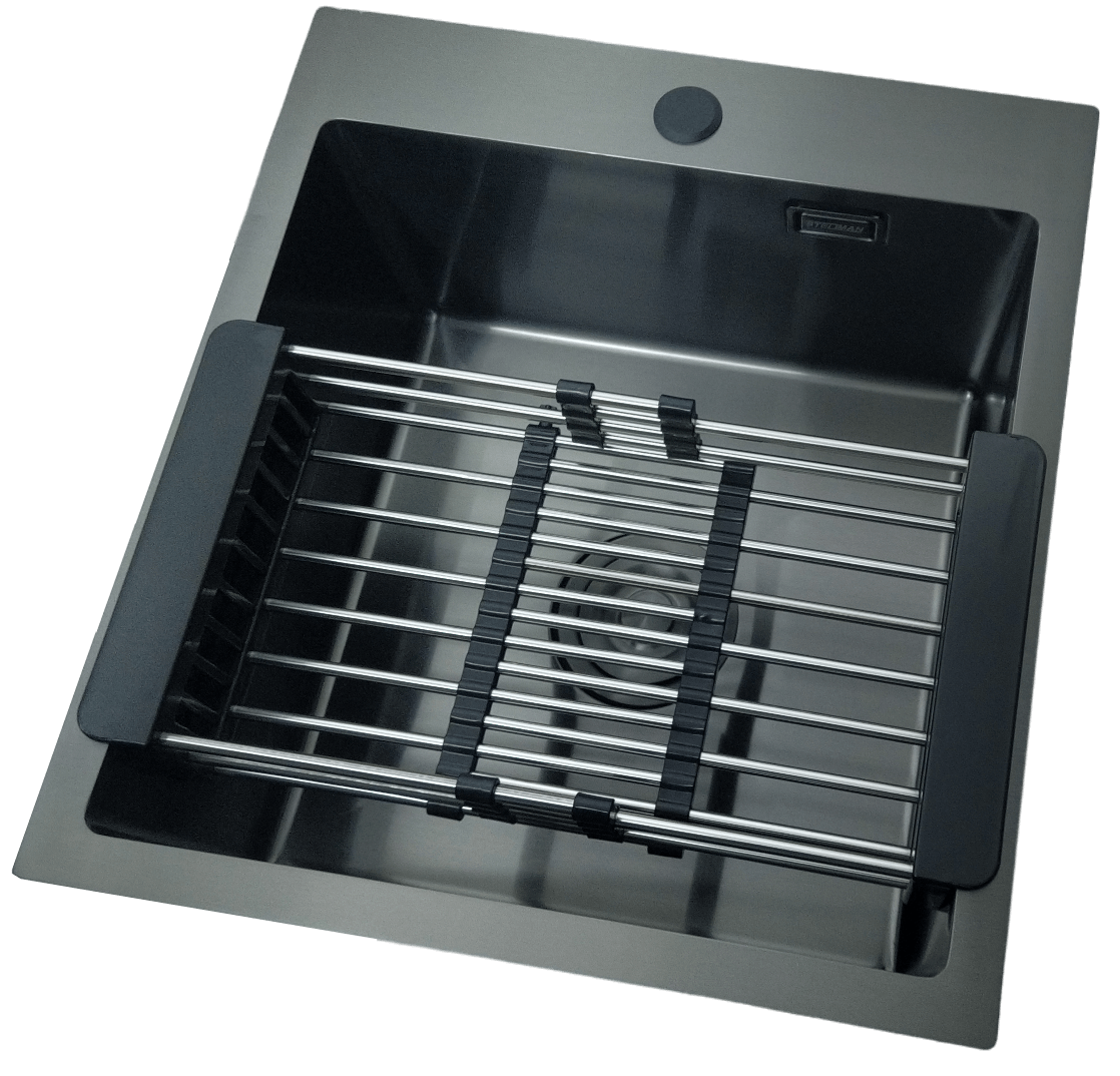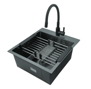 Zlewozmywak STELLMAN 4550 CZARNY z baterią Flexi Black Pure i koszykiem teleskopowym