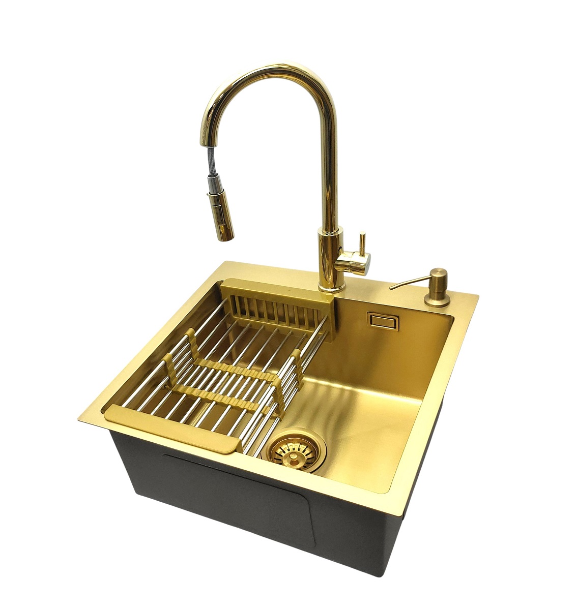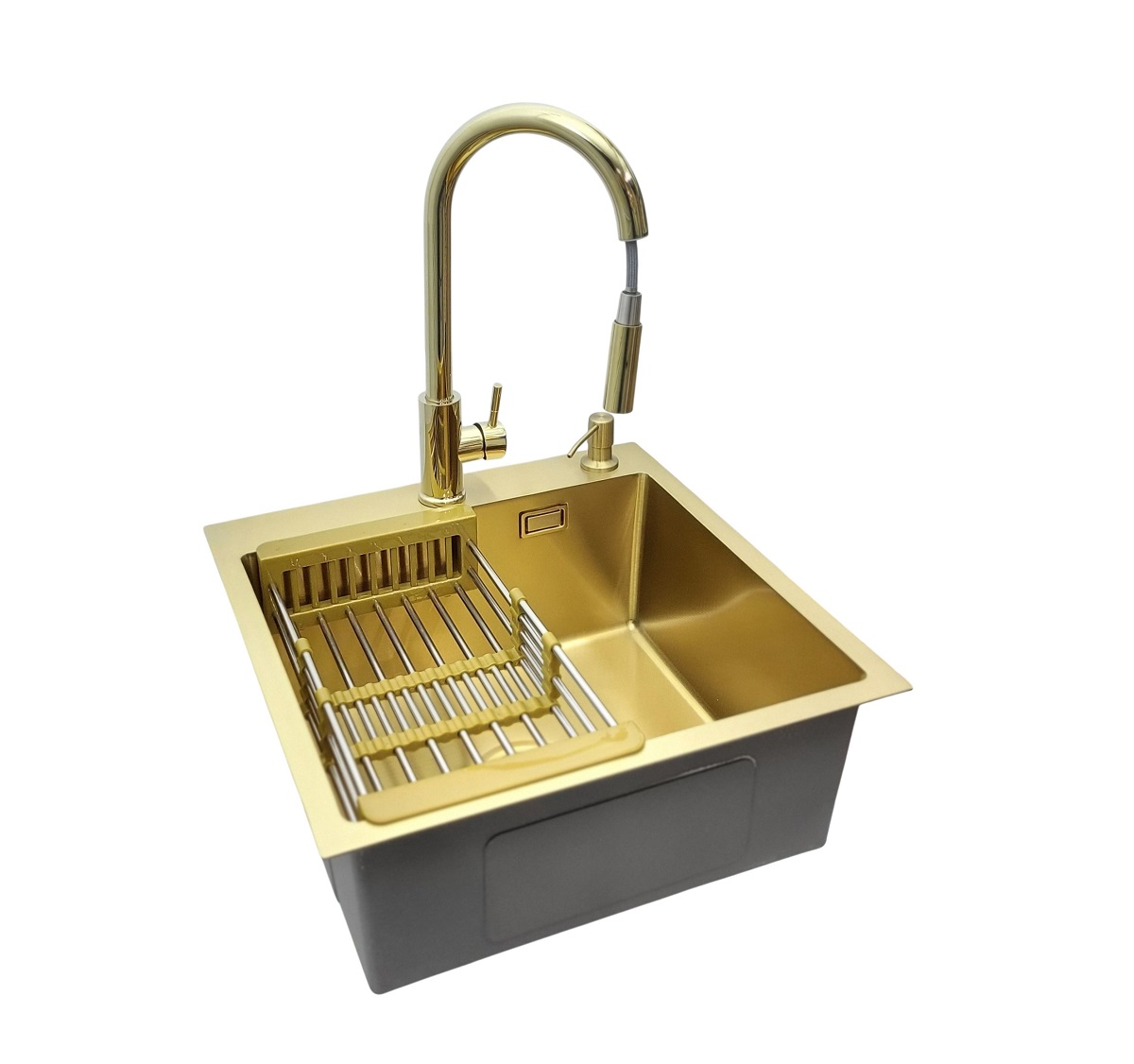 Zlewozmywak 5050 jednokomorowy + Dozownik + Koszyk + Bateria AFINO Gold
